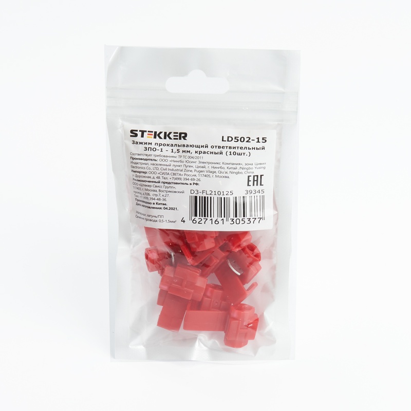 Характеристики Зажим прокалывающий ответвительный ЗПО-1 - 1,5 мм2, красный, LD502-15 (DIY упаковка 10 шт)