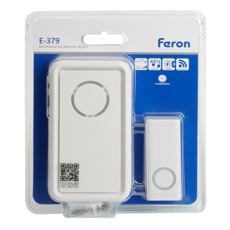 Характеристики Звонок дверной беспроводной Feron E-379 Электрический 18 мелодий белый с питанием от батареек