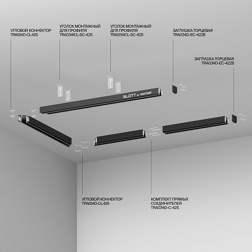 Состав трековой системы Трековая система Technical магнитная для натяжного потолка чёрная 150x150 TS-S-150-TR122-4-7W-DS-B