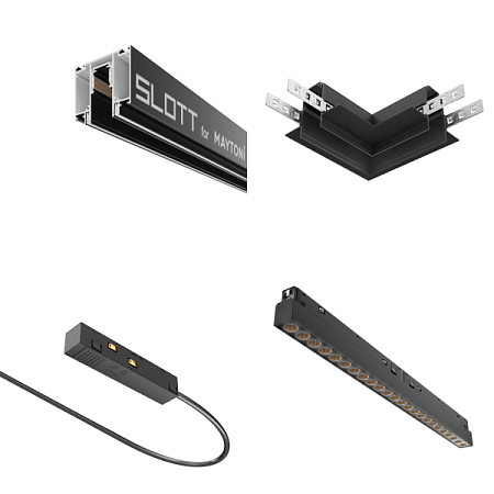 Состав трековой системы Трековая система Technical магнитная для натяжного потолка чёрная 200x200 TS-R-200-TR031-4-24W3K-M-DS-B
