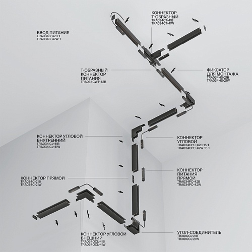 Состав трековой системы Трековая система Technical встраиваемая магнитная чёрная 380x160 TS-L-380-TR086-2-25W4K-B