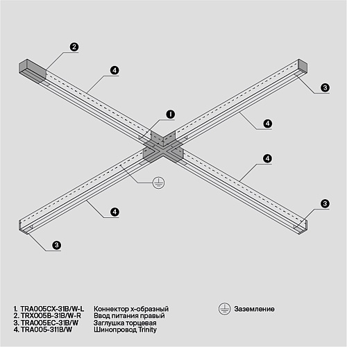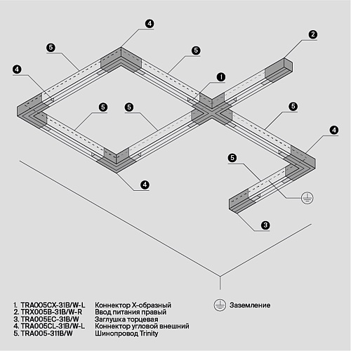 Состав трековой системы Трековая система Technical накладная трехфазная белая 200x200 TS-X-200-TR029-3-20W3K-M-W