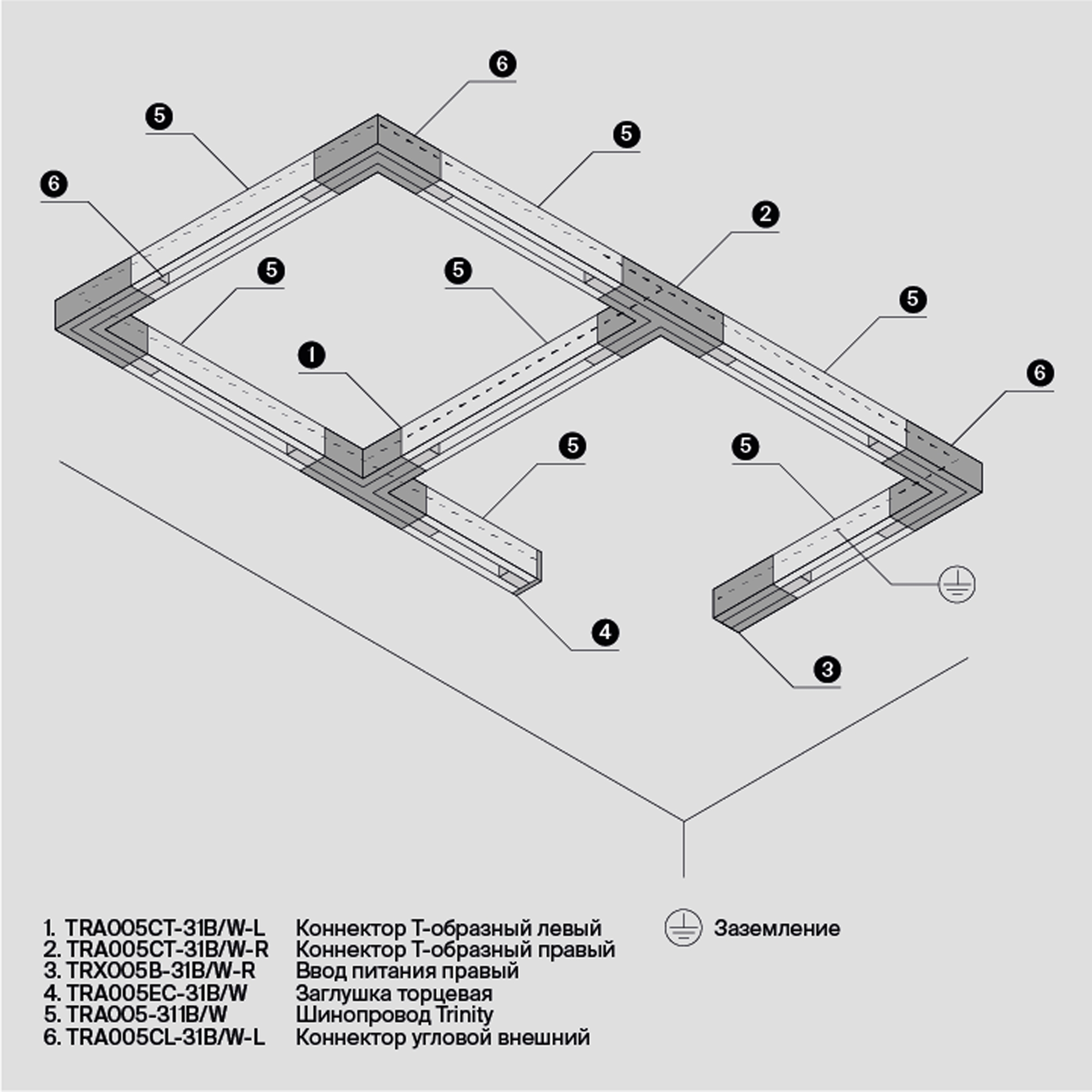 Состав трековой системы Трековая система Technical накладная трехфазная белая 300x300 TS-S-300-TR029-3-26W3K-M-W